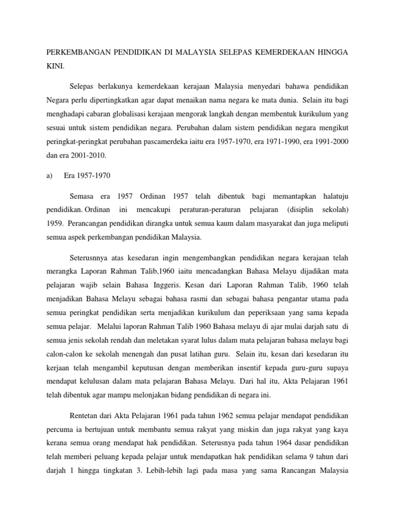 Perkembangan Pendidikan Di Malaysia Selepas Kemerdekaan Hingga Kini Pdf